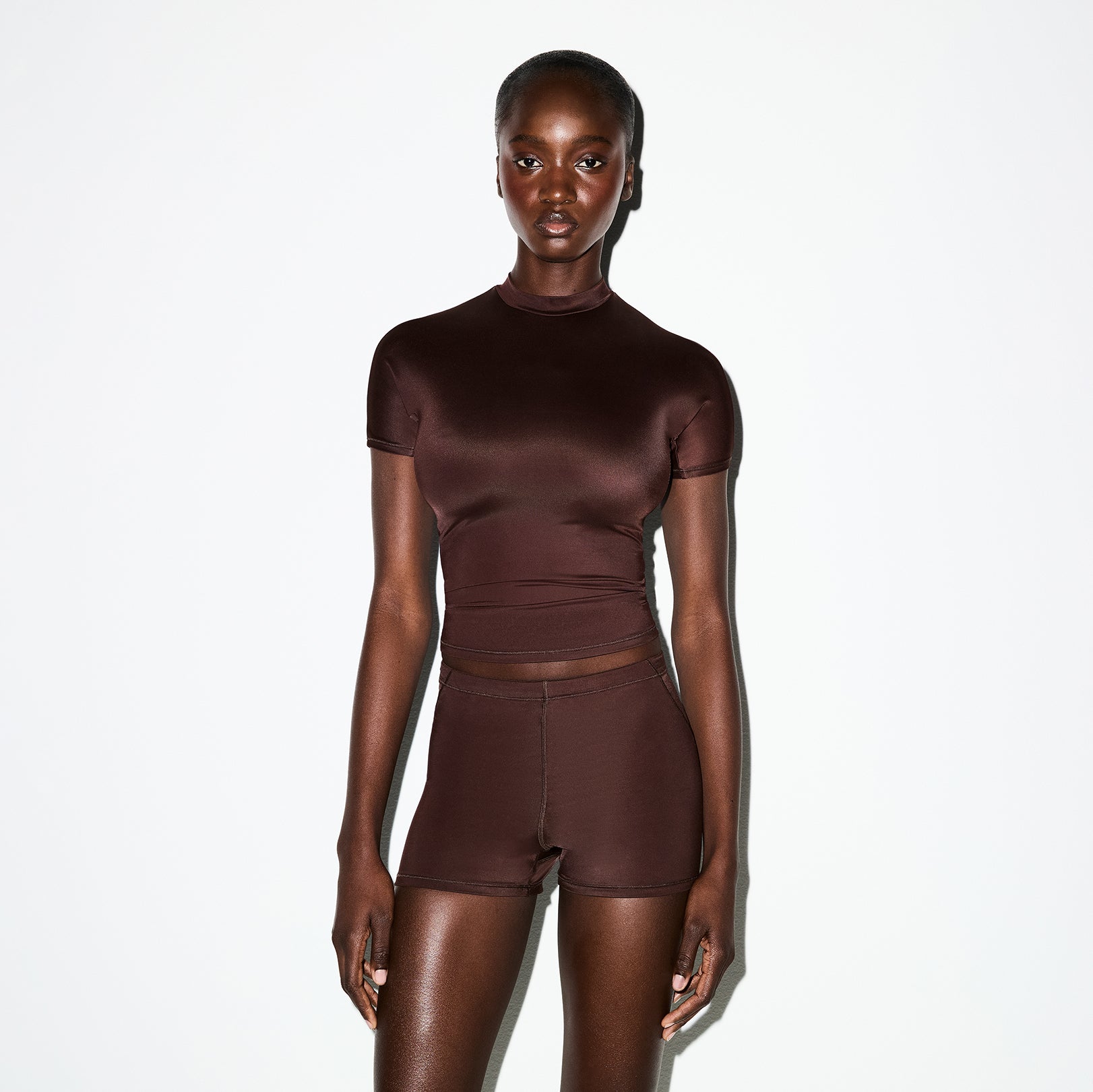 These Shine fabric boyshorts contour to your body with a soft sheen finish and ultra-light feel. Intenional seams and side darts sculpt your silhouette with a breathable, quick-drying finish.