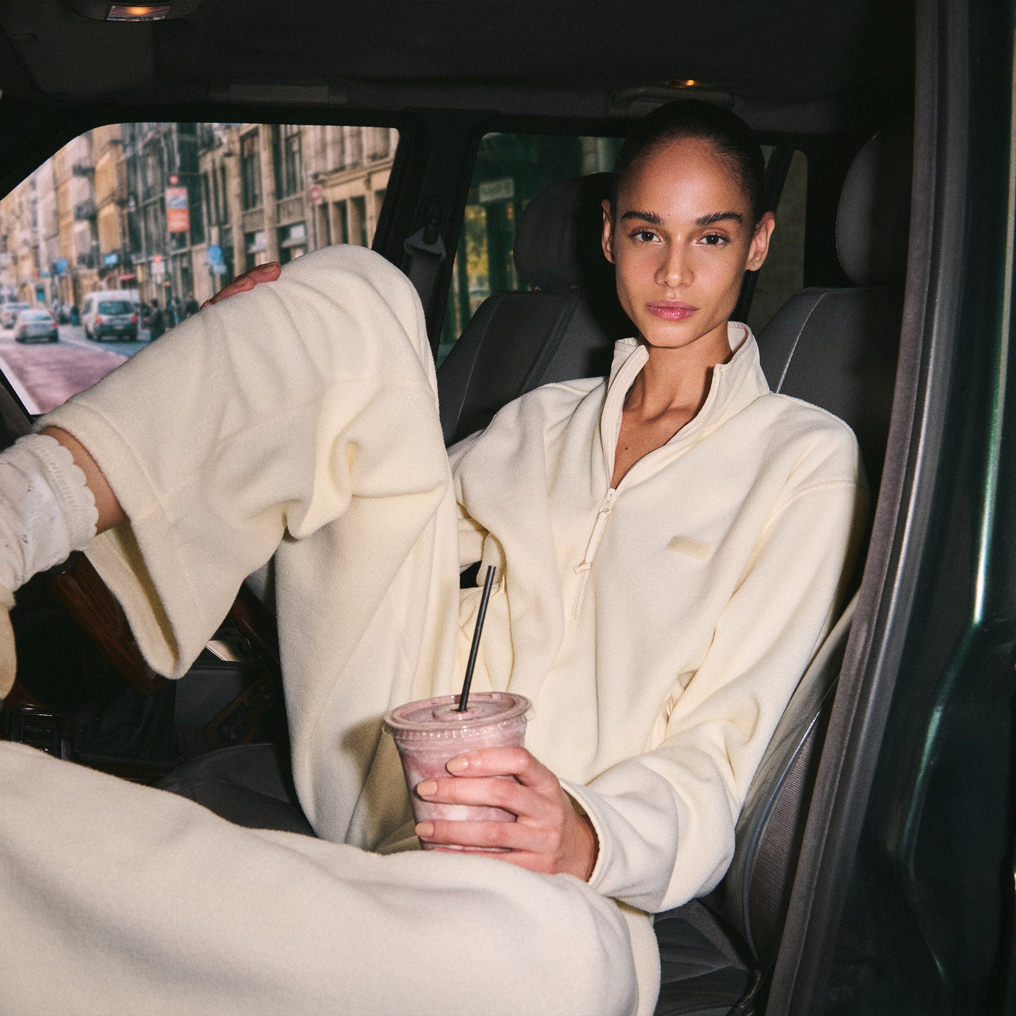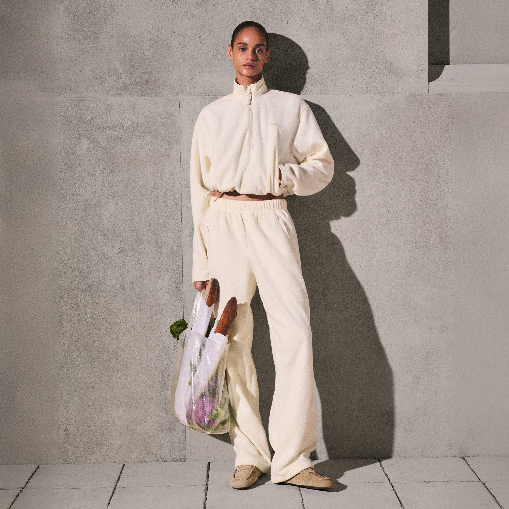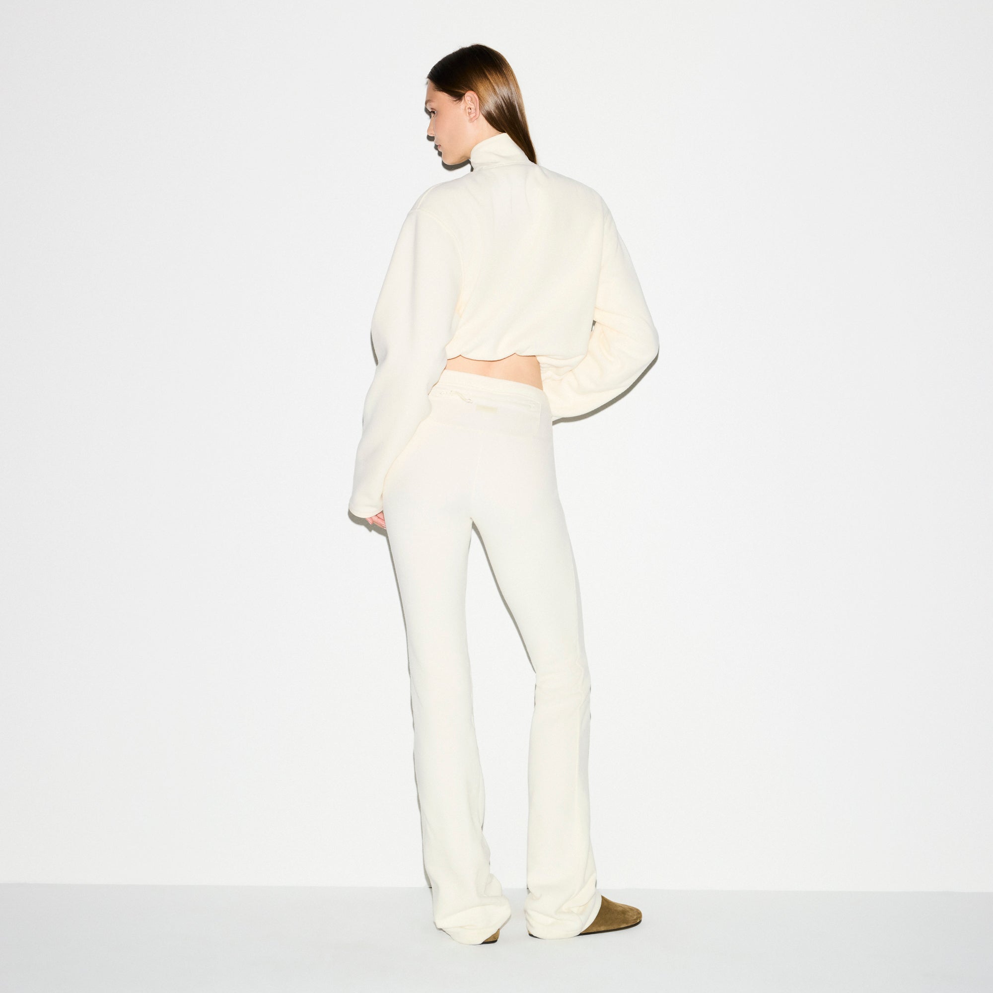 Cooler days call for this plush half-zip. Designed in our mid-weight polar fleece with contrast detailing, this relaxed pullover features a loose mock neck and adjustable bungee cord at the hem. Complete with zipper pockets and a SKIMS logo on the side chest. Fits true to size.
