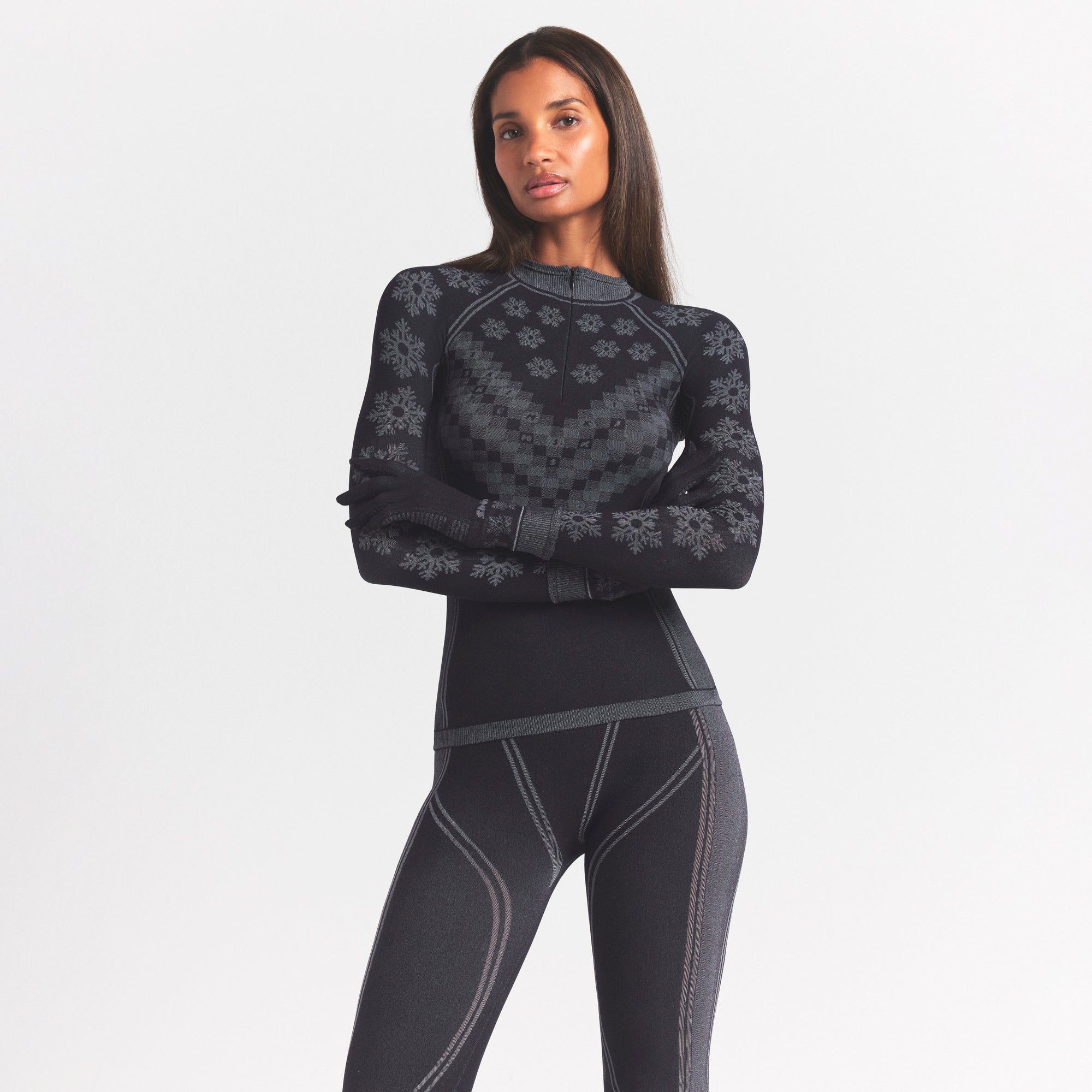 An essential for unmatched winter warmth. Build your cold-weather look from the inside out in this fair isle print legging that’s made for layering thanks to a sleek, seamless construction and gentle compression. Featuring quick-drying and thermoregulating tech to keep you toasty and dry all day long.