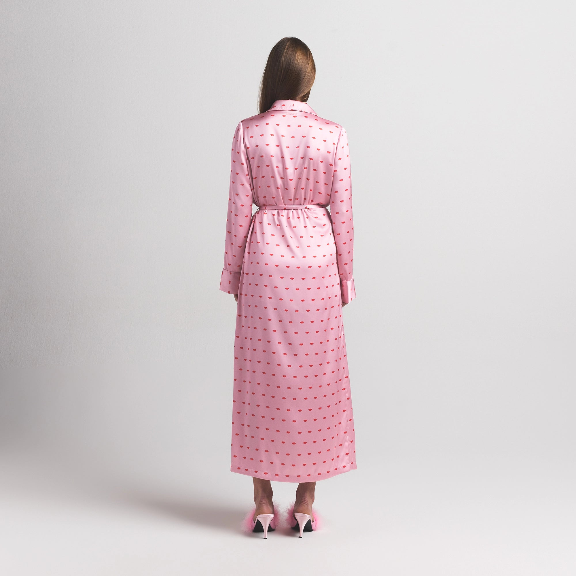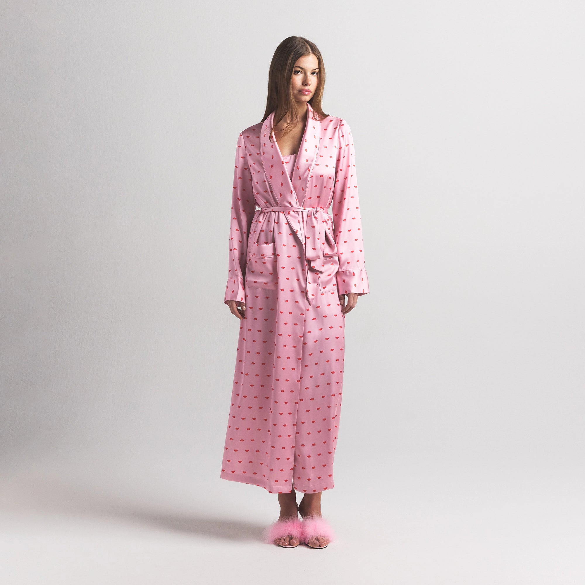 The dreamiest robe. Indulge in ultimate comfort with this long length robe, made from our signature-smooth Woven Shine fabric. This long sleeve style features an adjustable self-tie belt, shawl collar, and center front patch pockets. Complete with a logo label at center back neck.