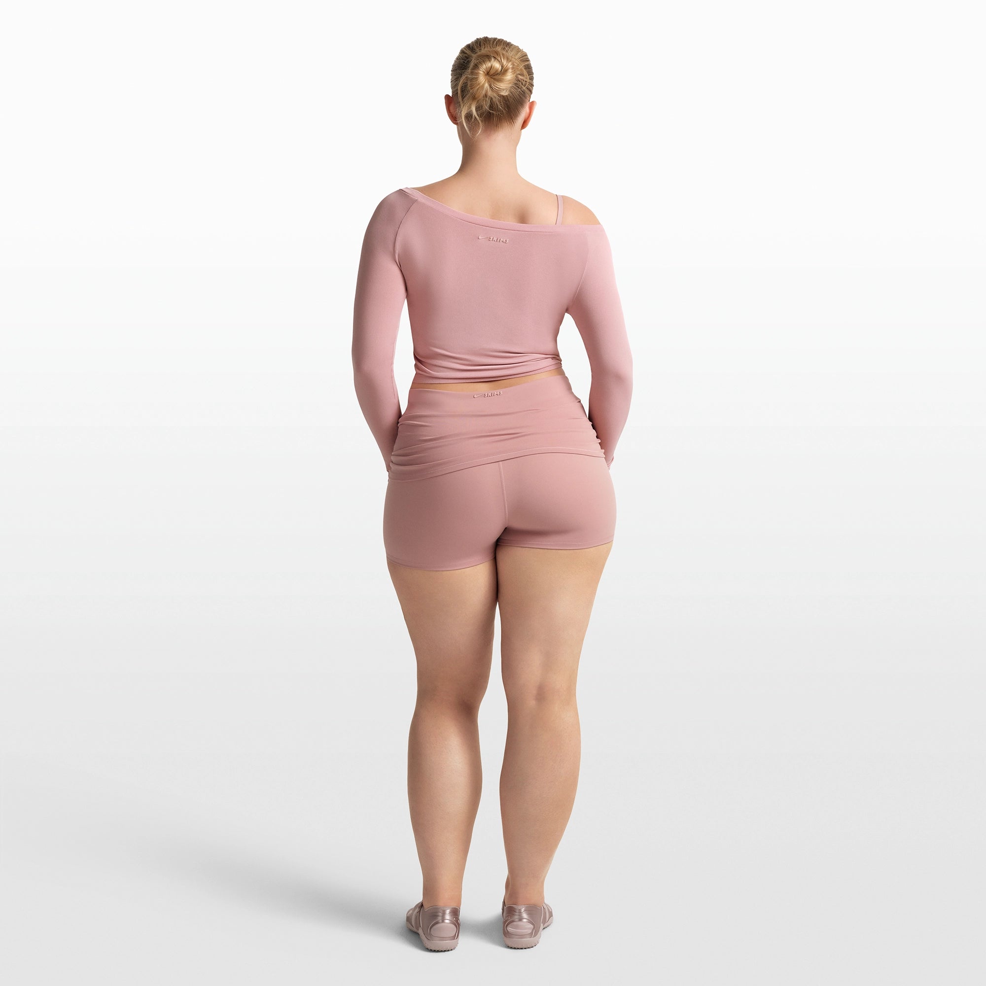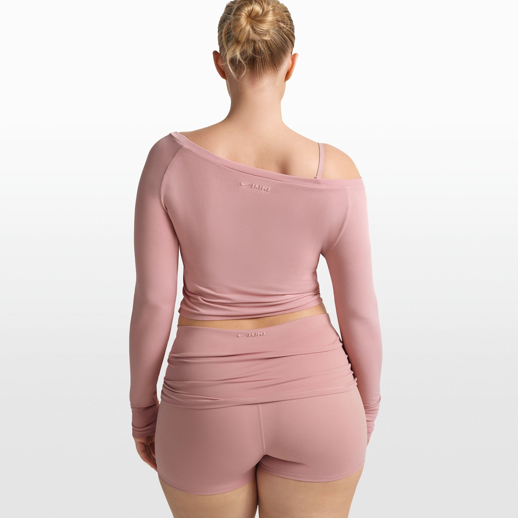 Feminine design meets effortless wear. In a lightweight, ultra-soft Stretch Knit fabric, this off the shoulder long sleeve top takes cues from classic ballet style to create an elevated layering piece.