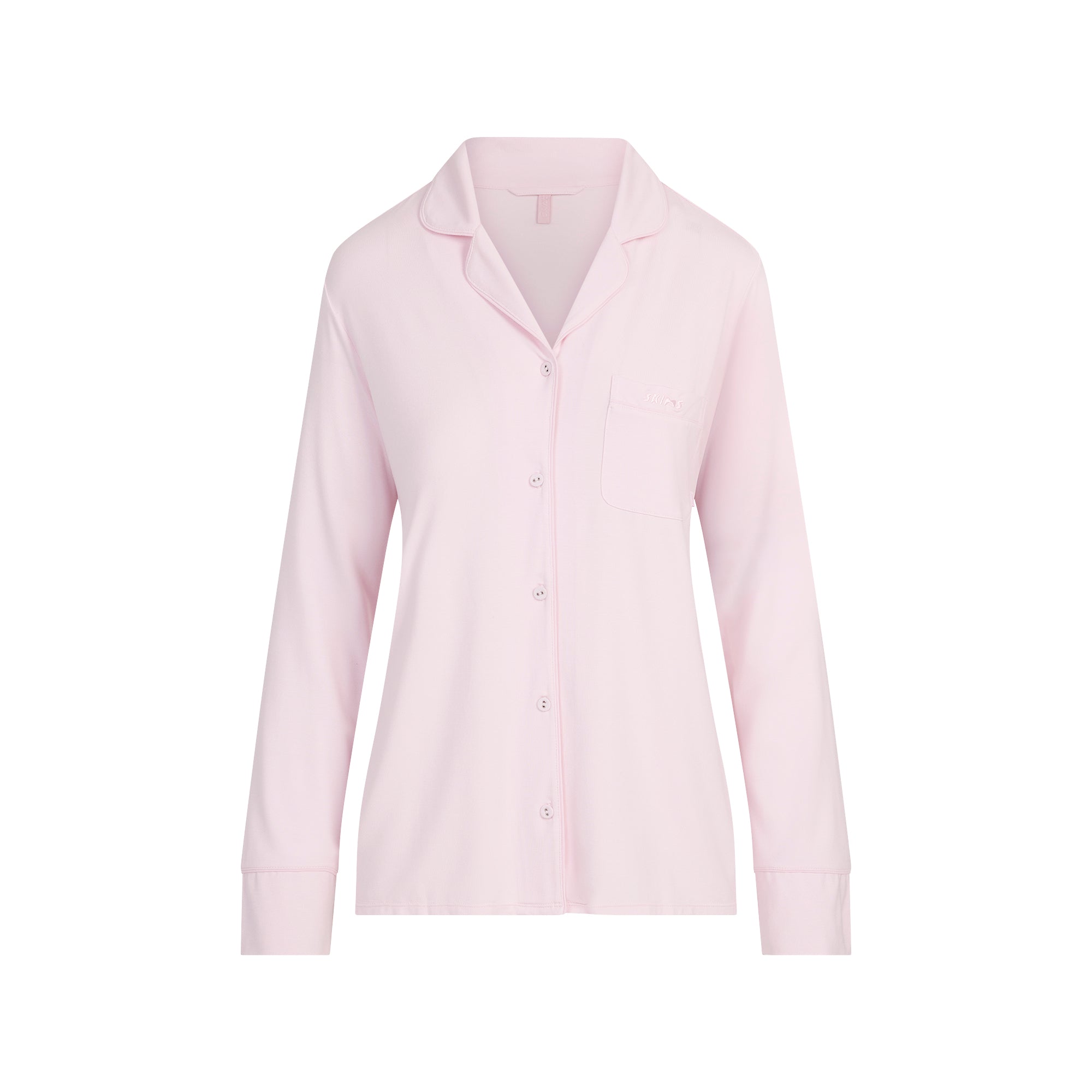Your old pajamas can’t compete with this soft, ultra-comfortable sleep set. Features a slightly oversized button-up top with long sleeves, a chest pocket, and piping details. The straight leg pants have a relaxed fit and a stretchy waistband with an adjustable interior drawstring. Fits true to size.