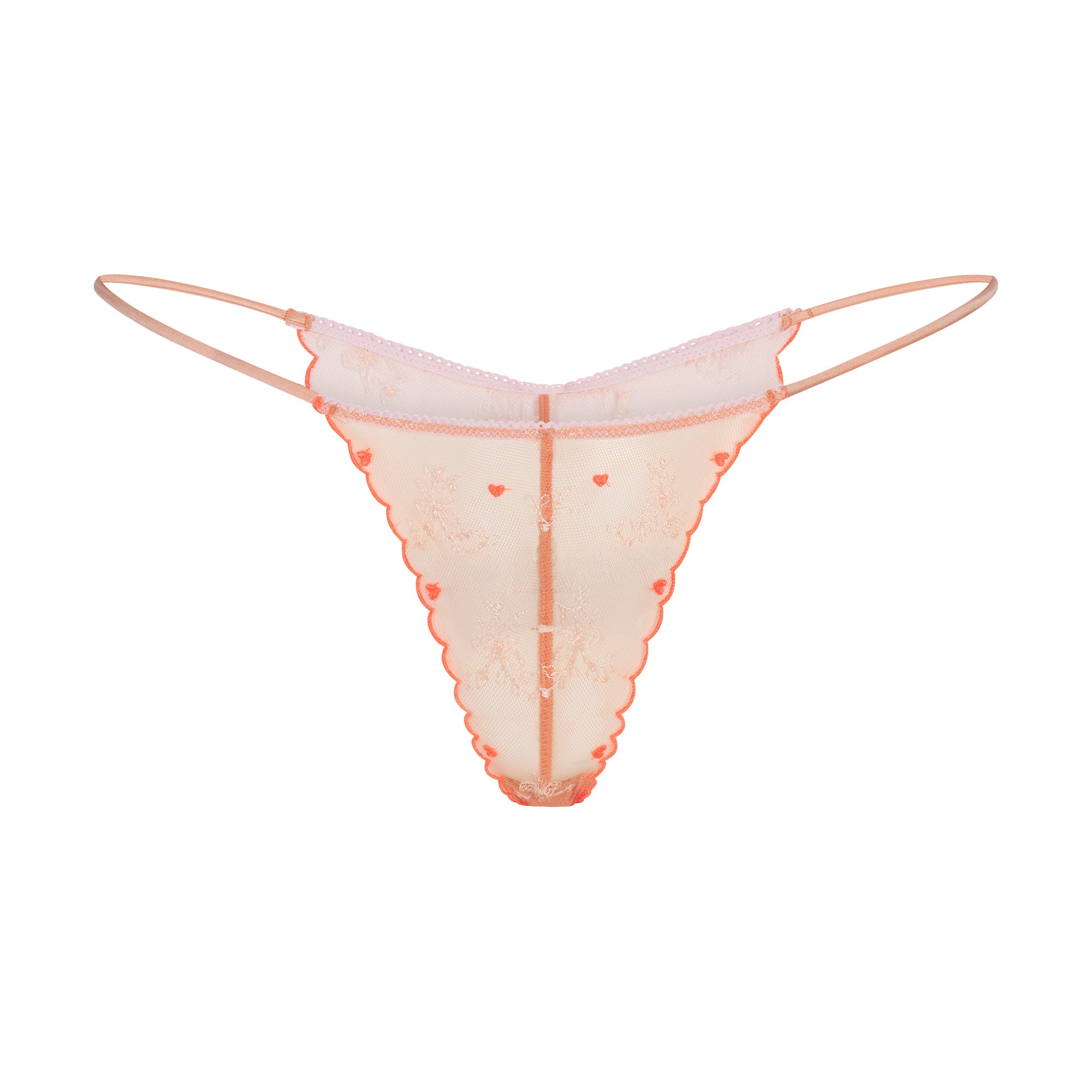 A match made in lingerie heaven. In playful embroidered tulle, this sheer set pairs a mini slip dress with a flirty tanga bottom for sexy, sweet results. The slip dress features skimpy coverage with adjustable straps and a ruffle detail, while the tanga offers cheeky back coverage and a ruched detail.