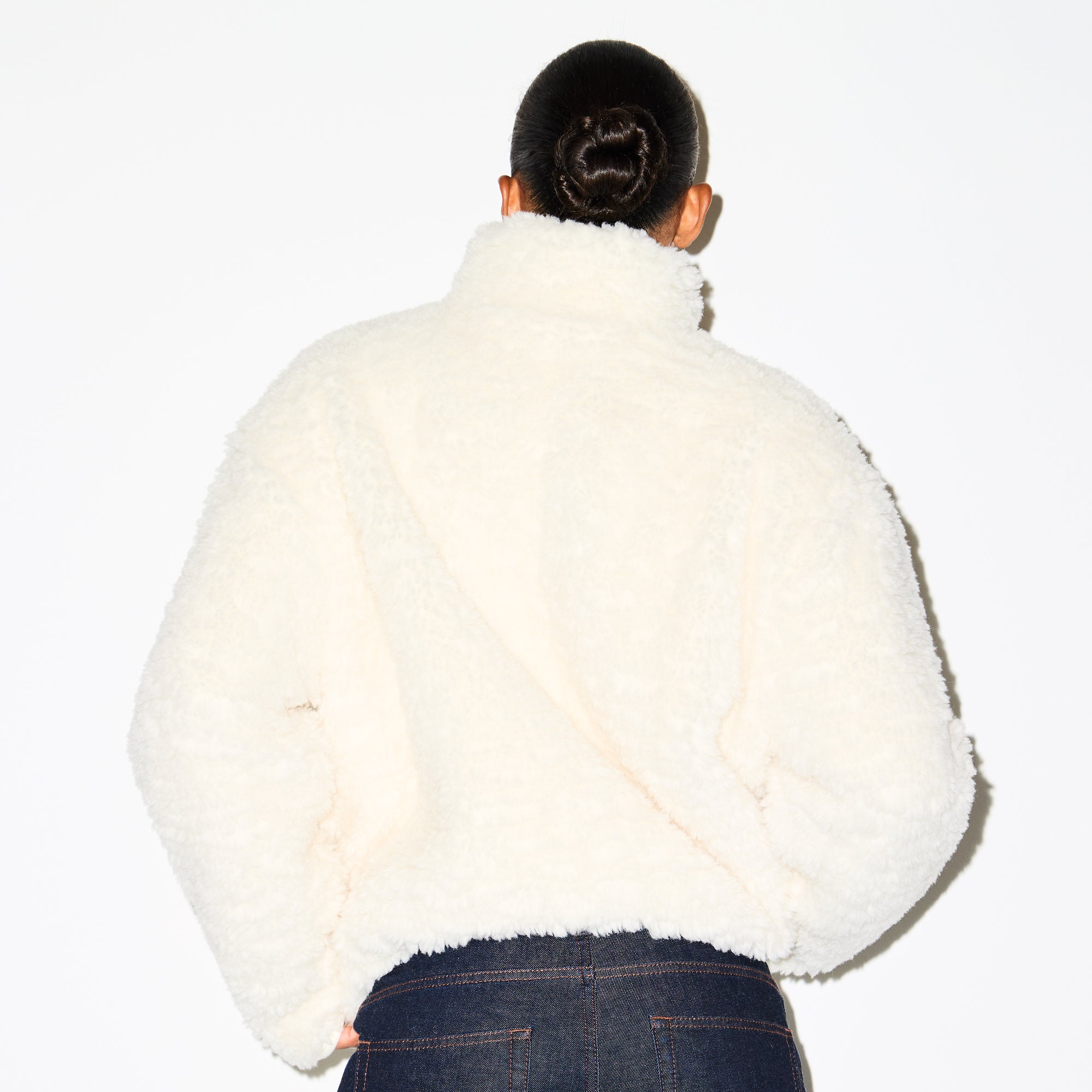 Your softest layer in a chic, mock neck silhouette. Designed in our warm faux fur fabric with a smooth, quilted satin lining, this zip-up jacket features a relaxed fix for comfort. Complete with zipper welt pockets and fits true to size.