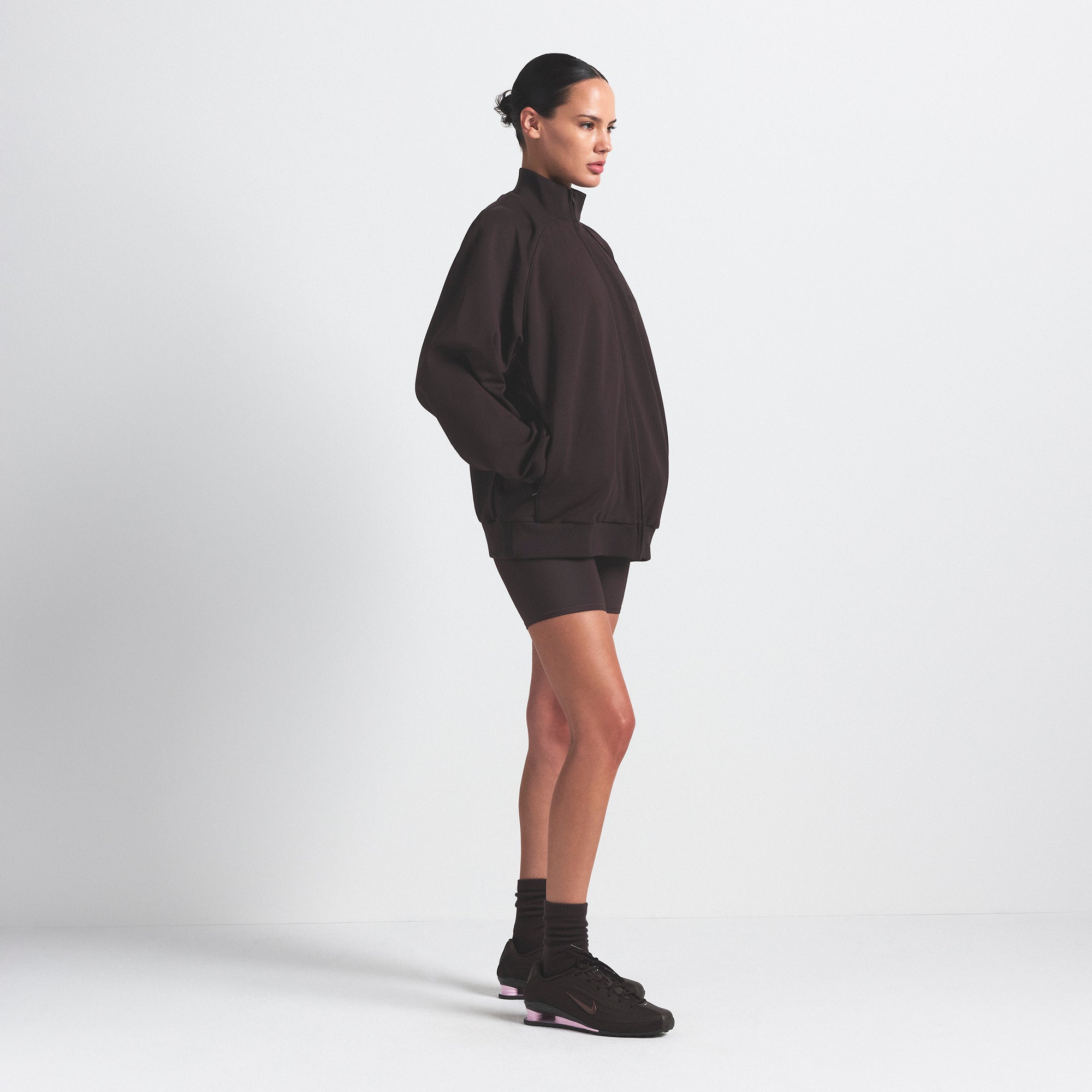 With a relaxed, oversized fit and a smooth hand-feel, this track-style jacket layers effortlessly over your gear. It’s your throw-on-and-go essential for wherever the day takes you.