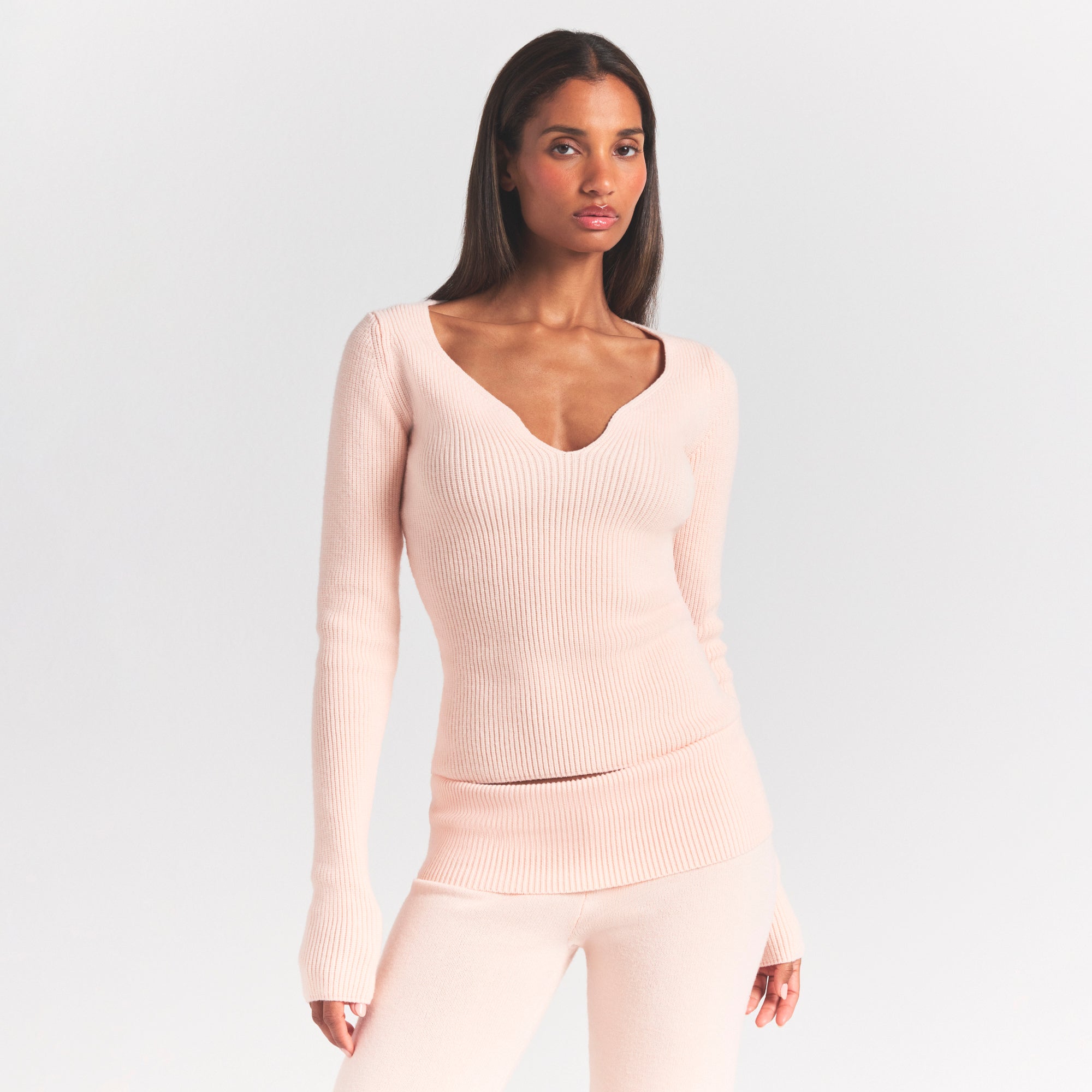 A little bit snuggly, a little bit sultry. With an ultra-flattering cut and a cozy ribbed knit fabric, this sweetheart-neck long sleeve can be dressed up or down to suit your mood.